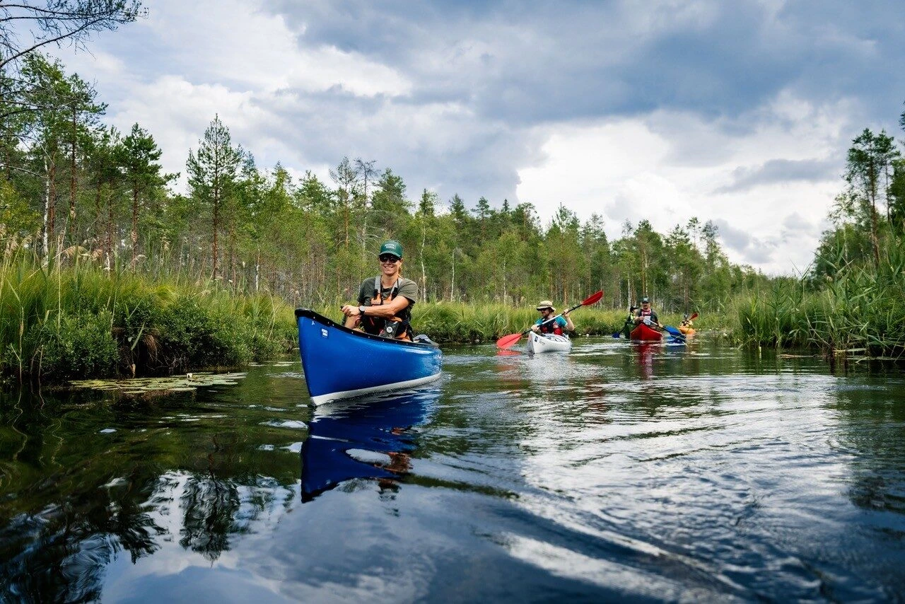 Retkikuvaus: Tapaaminen Lieviskänjoen päätepisteessä, josta kuljetus melonnan lähtöpisteeseen. Alkaen-hinta sisältää yhden henkilön ja kaluston kuljetuksen.